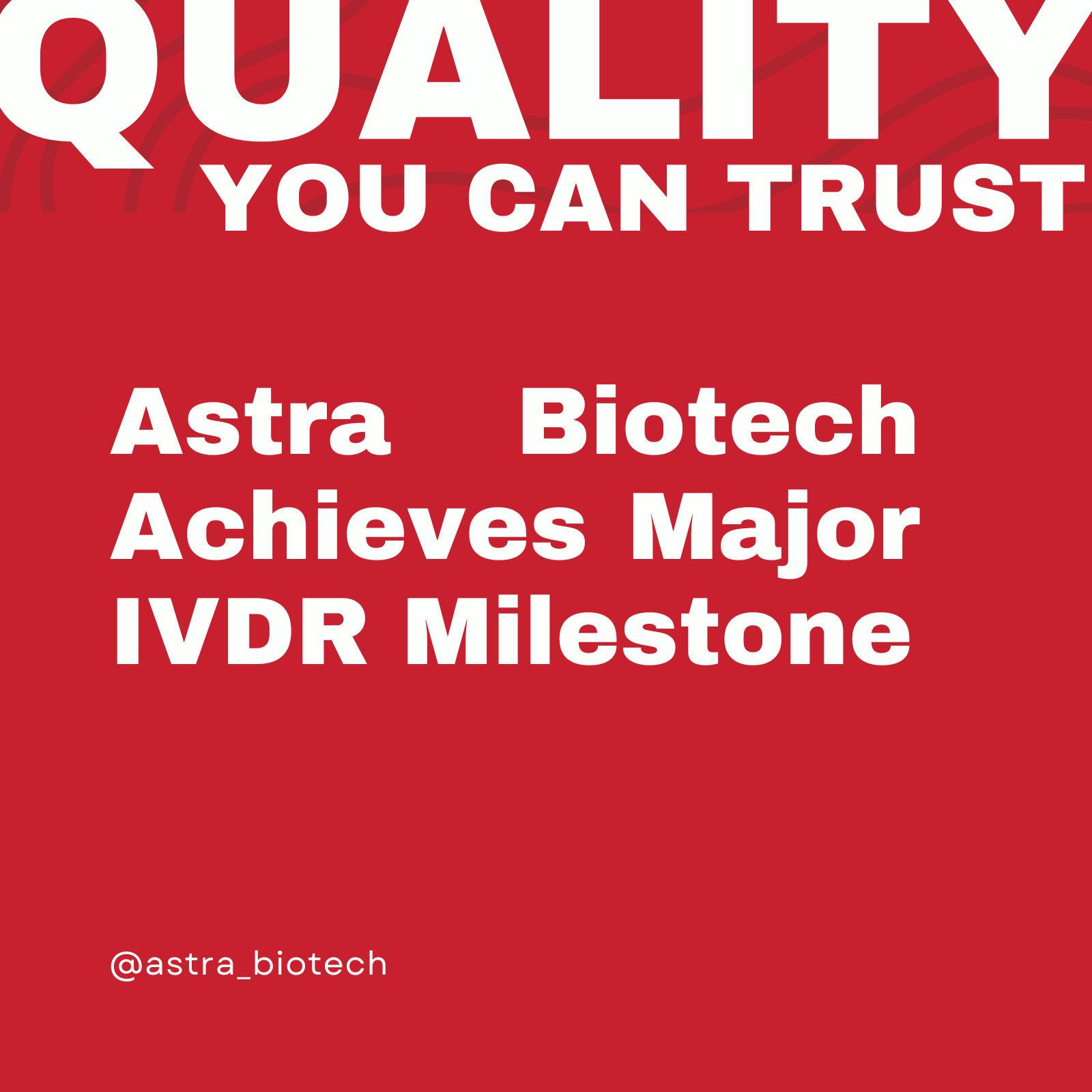 Wir freuen uns, Ihnen mitteilen zu können, dass Astra Biotech GmbH das Audit gemäß der IVDR-Verordnung (EU) 2017/746, Anhang IX, Kapitel I, sowie der DIN EN ISO 13485:2021 erfolgreich bestanden hat.
